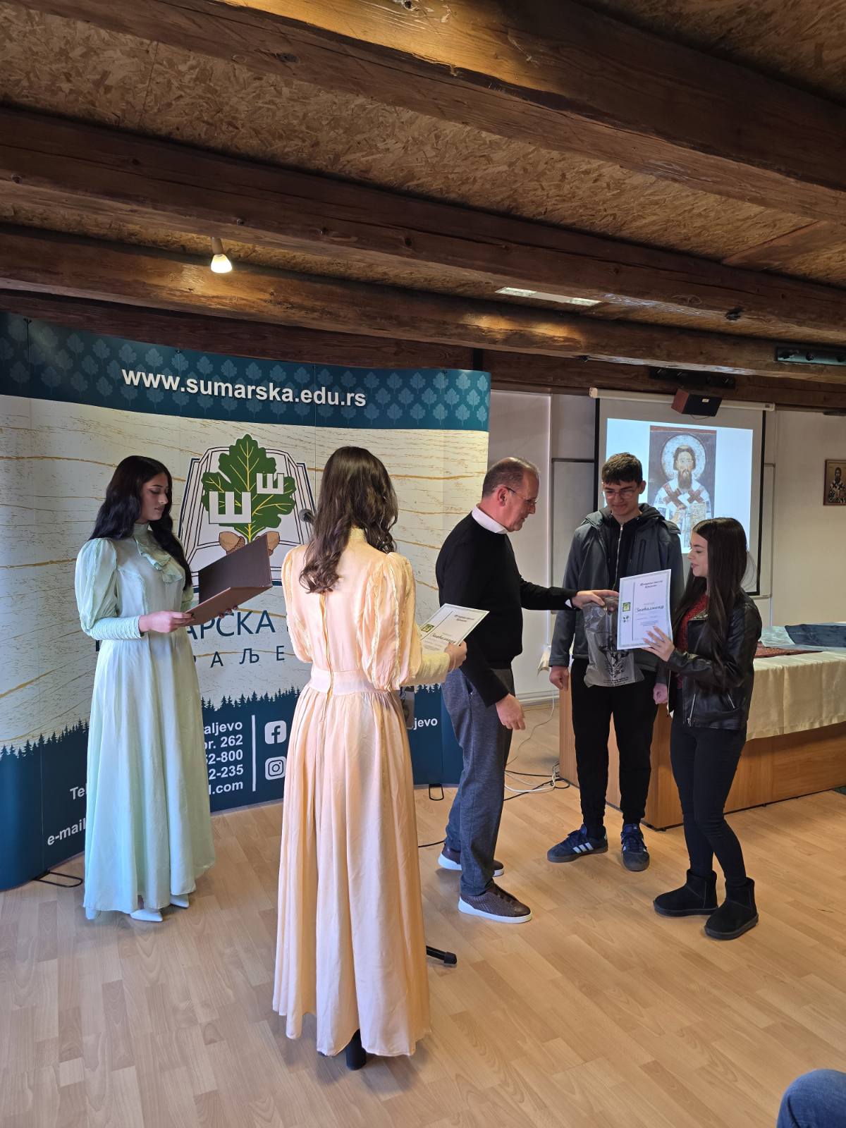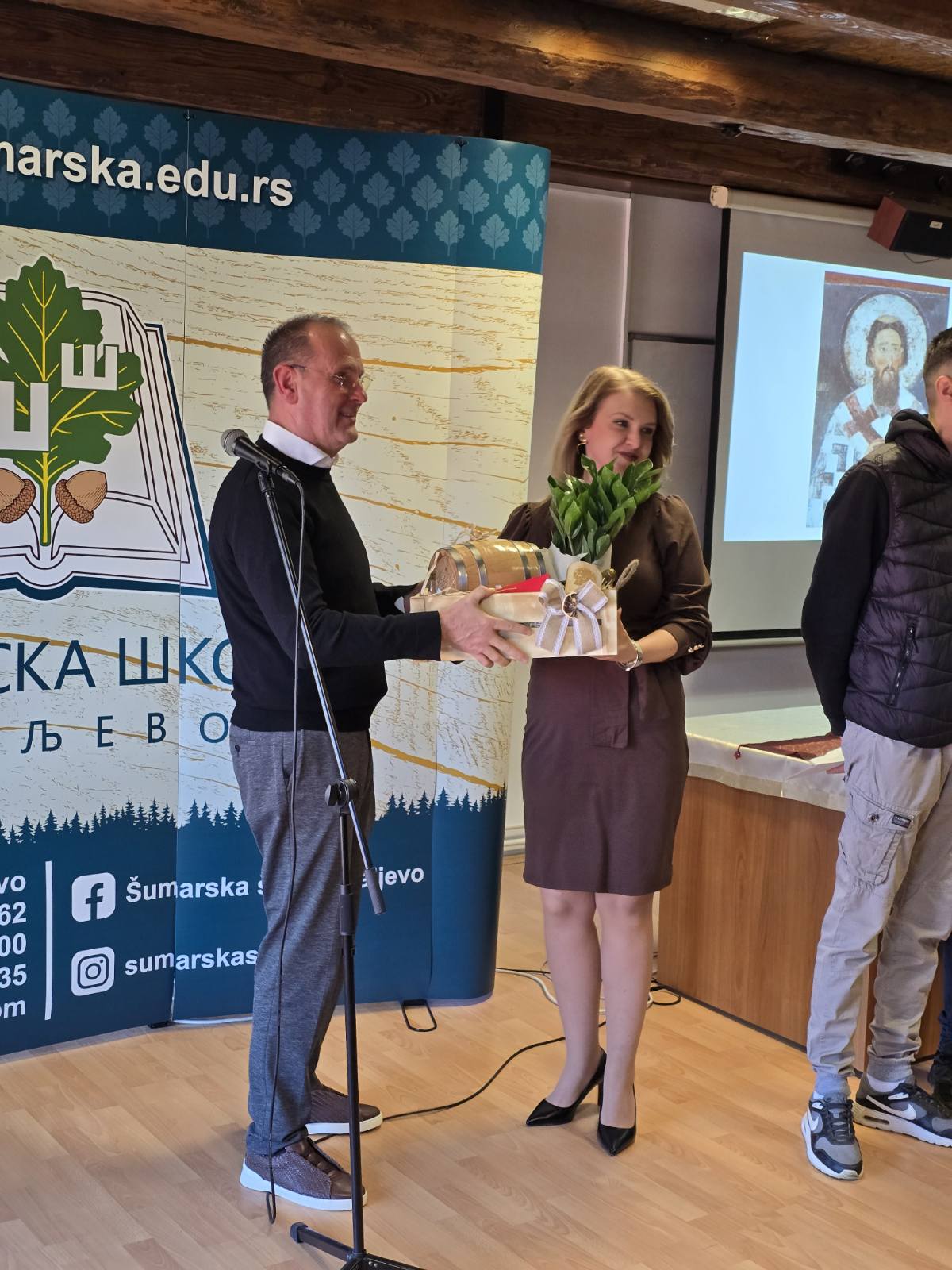 Nakon Svetosavske akademije koju je organizovala i priredila Slavica Lekić, prof. srpskog jezika i književnosti, u saradnji sa Natašom Debeljak, prof. muzičke kulture, i Irenom Savić, prof. srpskog jezika i književnosti, uz predano učešće učenika naše škole, organizovan je svečani ručak na kojem je direktor Zoran Nikolić, u ime kolektiva Šumarske škole, uručio poklone kolegama koji su u prethodnoj godini otišli u zasluženu penziju.