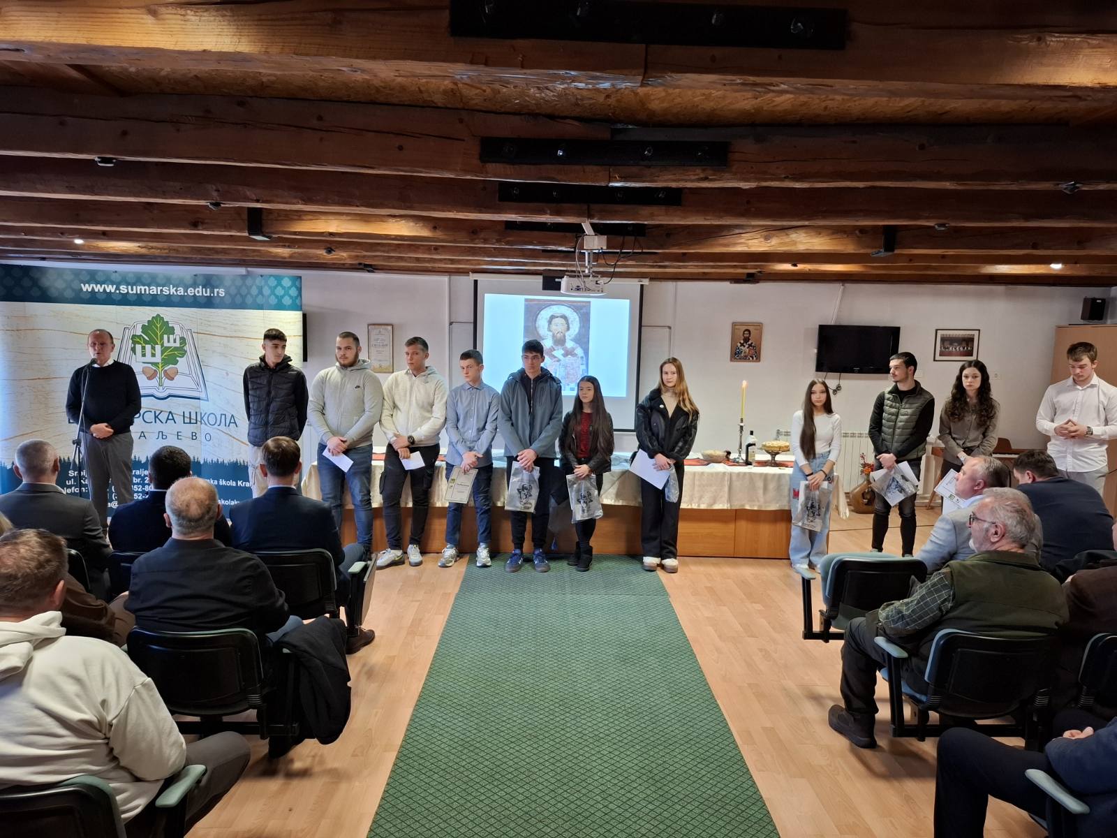 Školska slava je predstavljala priliku za posetu mnogih partnera Škole, pa smo imali priliku da ugostimo predstavnike JP „Srbijašume“, JP „Vojvodinašume“ sa izdvojenim šumskim gazdinstvima, Lovačkog udruženja Kraljevo i Lovačkog saveza Jugoistočne Srbije, JP Nacionalni park Kopaonik, a uz posebno zadovoljstvo i predstavnike SOZU „Gorče Petrov“ iz Kavadaraca u Republici Severnoj Makedoniji.
